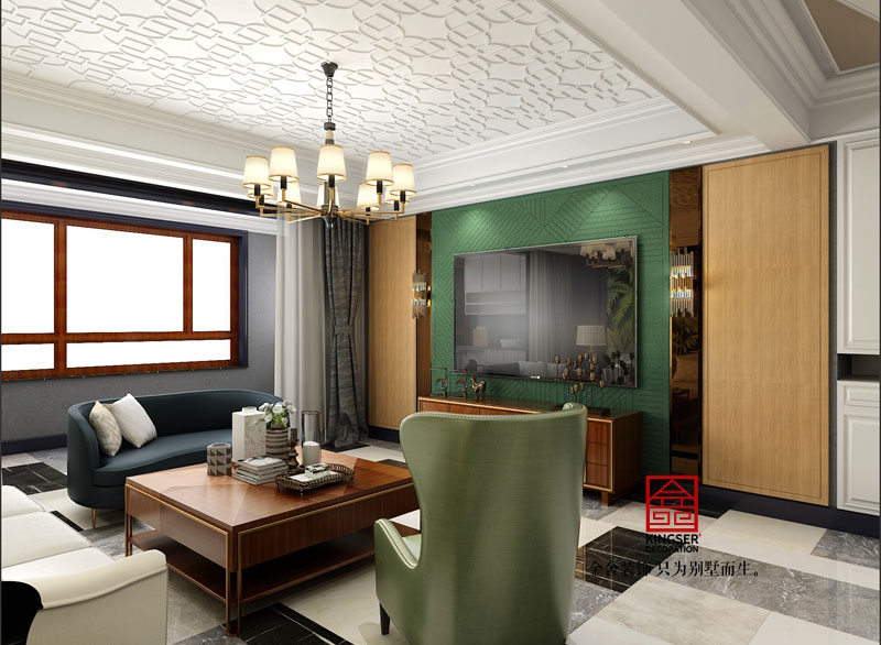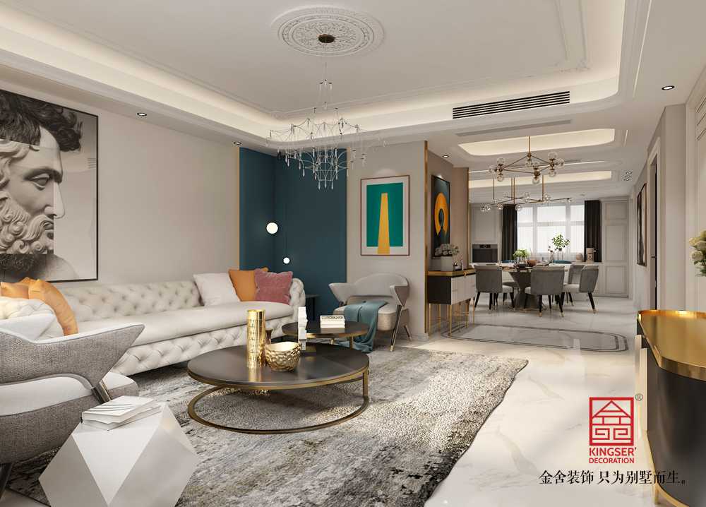 鑫界王府170平米裝修-美式輕奢-客廳