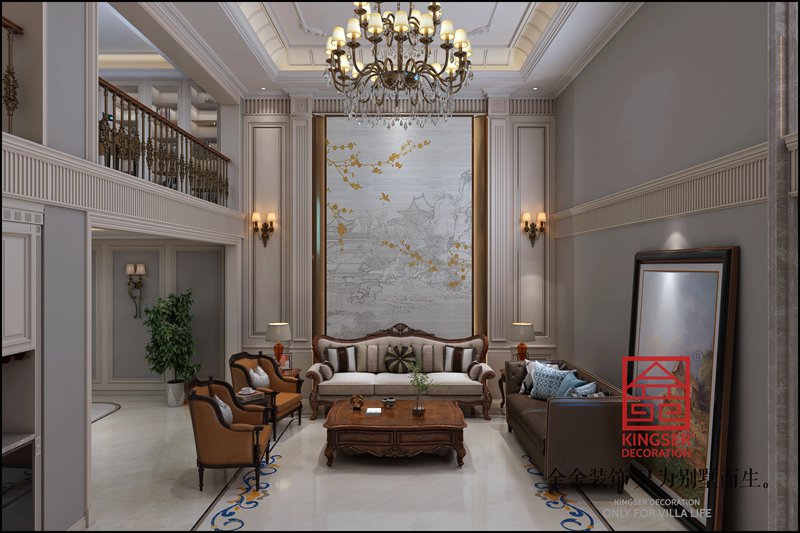 衡水漢王府別墅裝修現(xiàn)代法奢風(fēng)格客廳效果圖