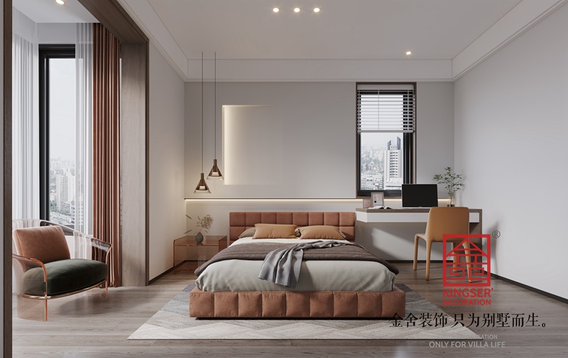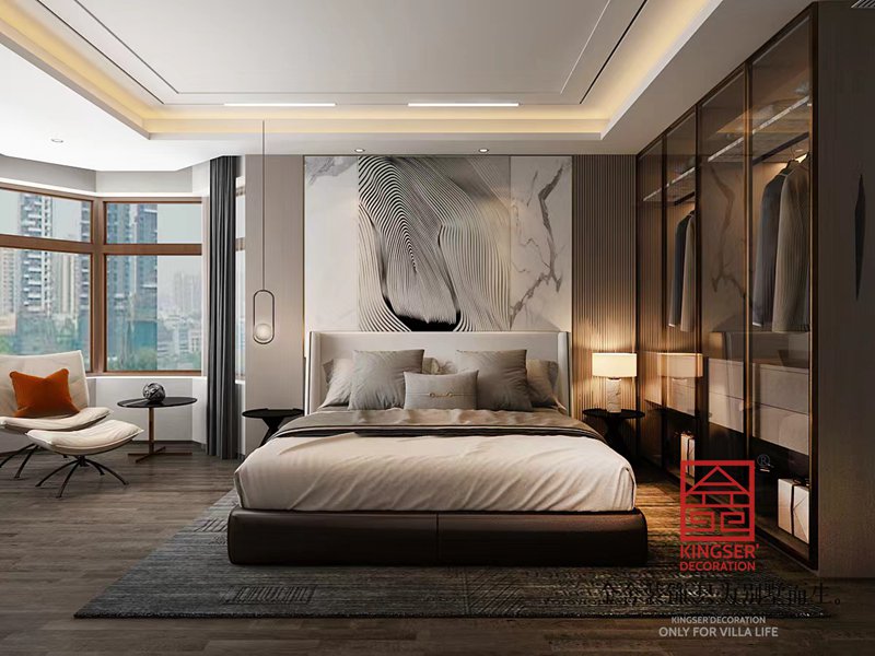衡水漢王府別墅裝修現(xiàn)代法奢風(fēng)格臥室效果圖