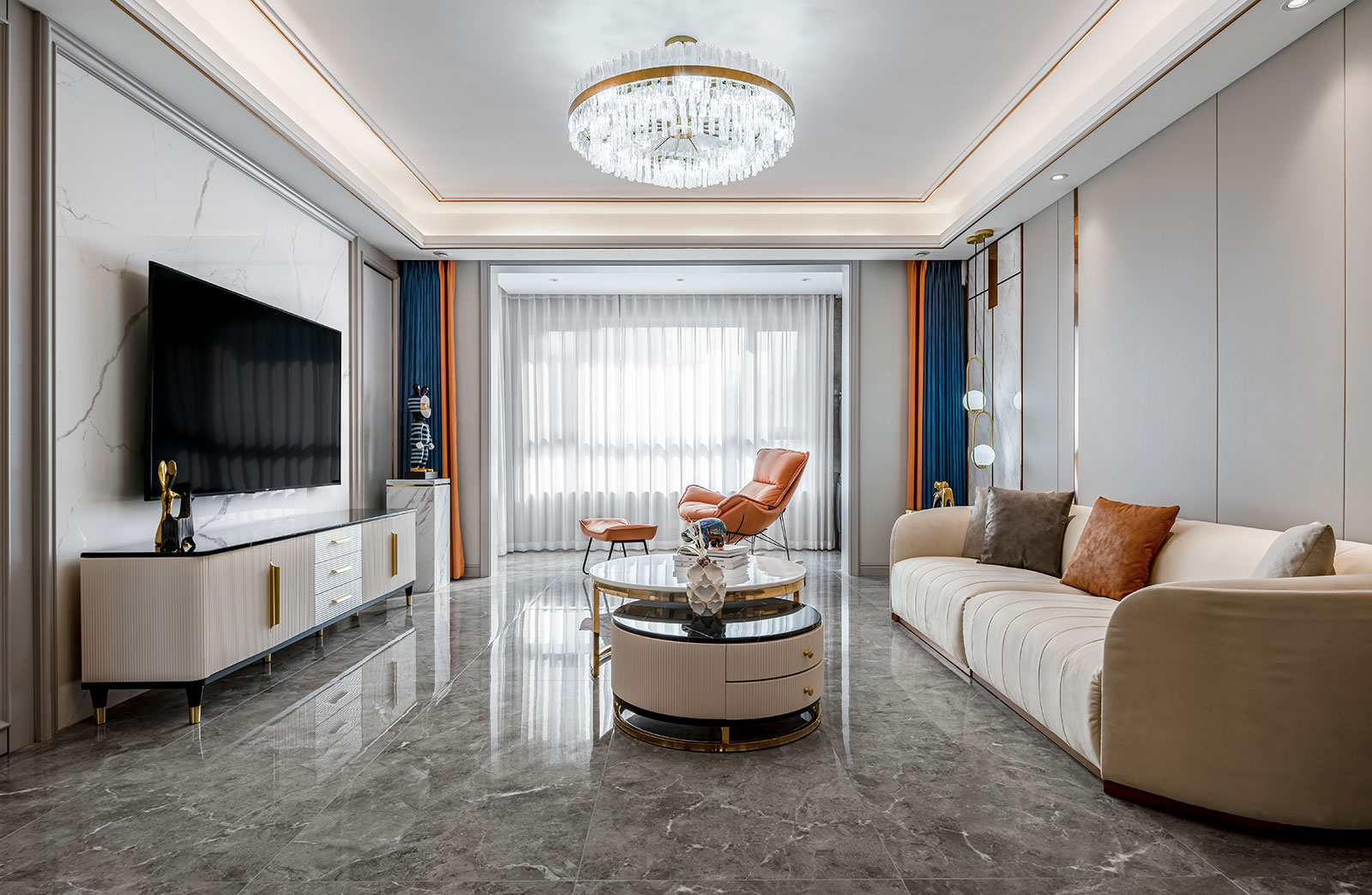 東南智匯城191㎡美式輕奢實(shí)景 淡淡暖灰色讓靜謐成為空間主導(dǎo) 美式的優(yōu)雅,輕奢的精致 金舍裝飾只為別墅而生