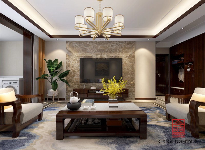 金悅府220平米新中式裝修效果-客廳