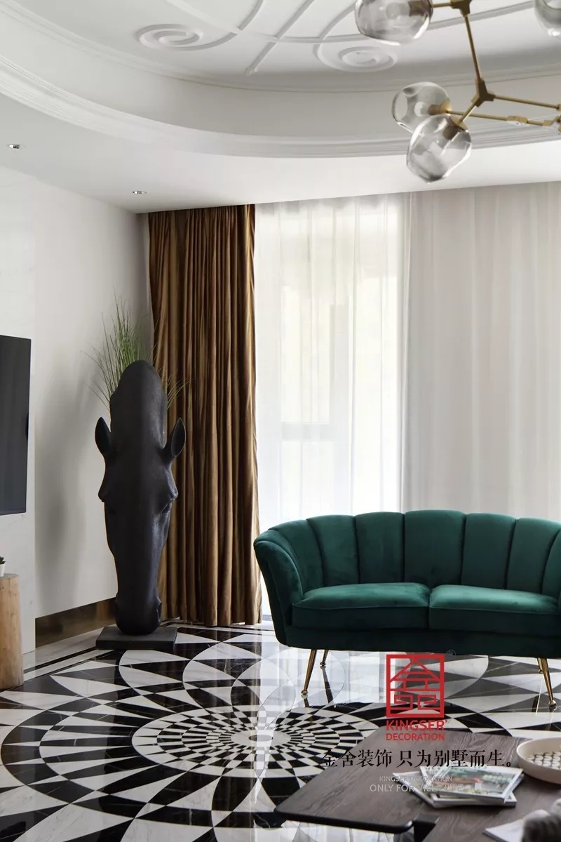 地毯:應注意地毯的質地和花色,通過鋪設一張較大面積的地毯來進行地面空間區(qū)分。注意與家具色調保持和諧一致。