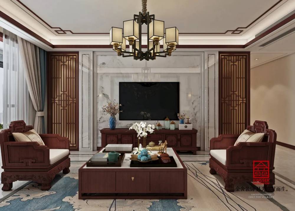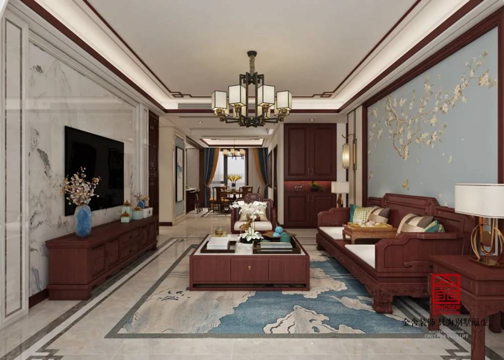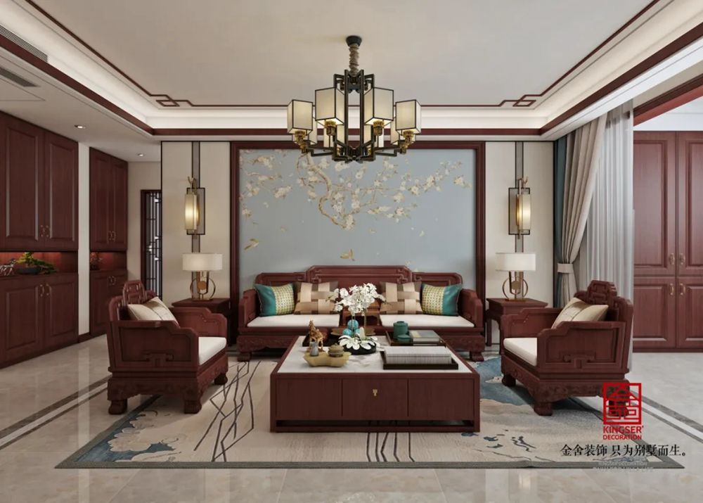 所謂萬變不離其宗,任何一種風(fēng)格演繹都有其特定的文化背景作為支撐,以此來傳遞特定文化氛圍中人們的生活追求。那么新中式便是以中國傳統(tǒng)古典文化作為背景的。營造的是極富中國浪漫情調(diào)的生活空間,如紅木、青花瓷以及一些紅木工藝品等都體現(xiàn)了濃郁的東方之美,這正是新中式風(fēng)格與其它風(fēng)格所不同的地方。