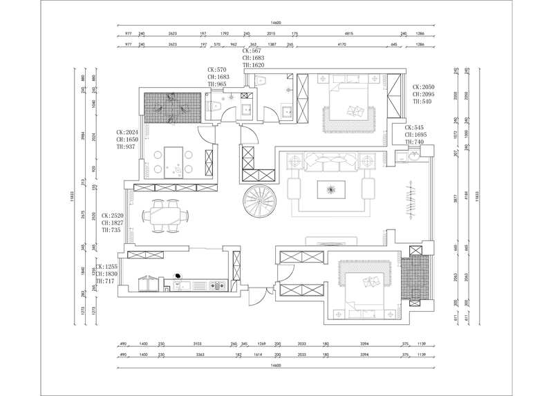 各個空間戶型方正,后期空間利用率高;整個空間全明通透,采光良好,同時利于居住空間通風(fēng);從臥室進衛(wèi)生間需要穿過餐廳或客廳;客廳、臥室、衛(wèi)生間和廚房等主要功能間的尺寸以及比例適中,有利于采光和通風(fēng),居住起來舒適、方便