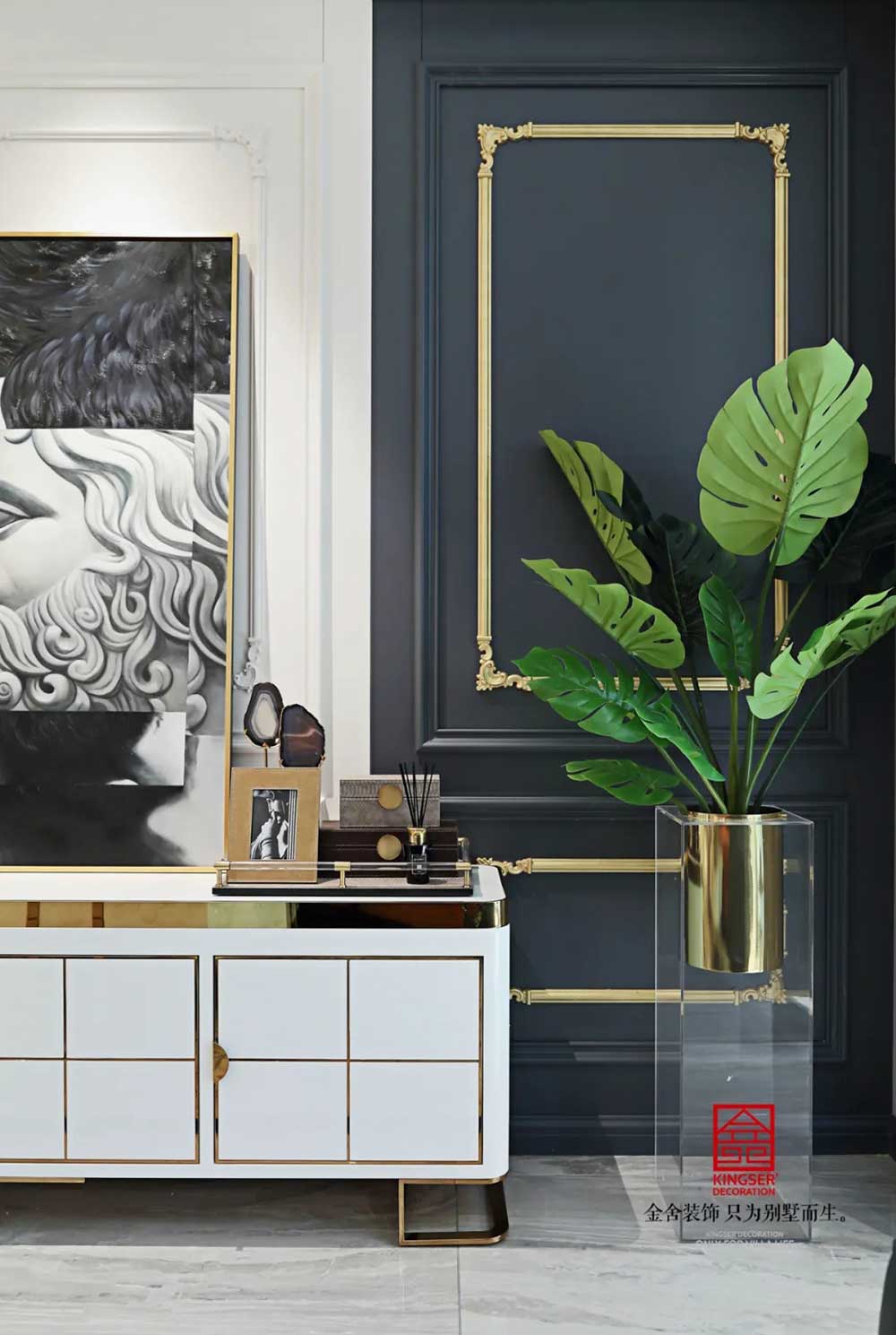 石家莊金舍裝飾-亨倫觀唐名邸118平米新古典風(fēng)格裝修實(shí)景。打破了傳統(tǒng)的新古典風(fēng)格,將元素簡化到極致,讓風(fēng)格隨著居住者而變化,生活的味道自然會(huì)隨著設(shè)計(jì)的發(fā)展而不斷變化。新古典中“古典”這個(gè)詞是家居的核心,新古典風(fēng)格化繁為簡,從整體到局部,無論是精雕細(xì)琢,還是鑲花刻金都給人一絲不茍的印象。