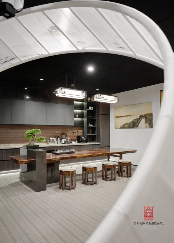 -御河上院在商場的樓盤展示區(qū)裝修實景,在設(shè)計中將自然與人文的意象融入室內(nèi)設(shè)計,綠意盎然的自然景象以其深厚的文化底蘊滋潤著人們的心靈,對自然的認識和感悟,讓人豁然開朗,心曠神怡,也就成為中國傳統(tǒng)文化資產(chǎn)的傳承、轉(zhuǎn)譯與新生 。