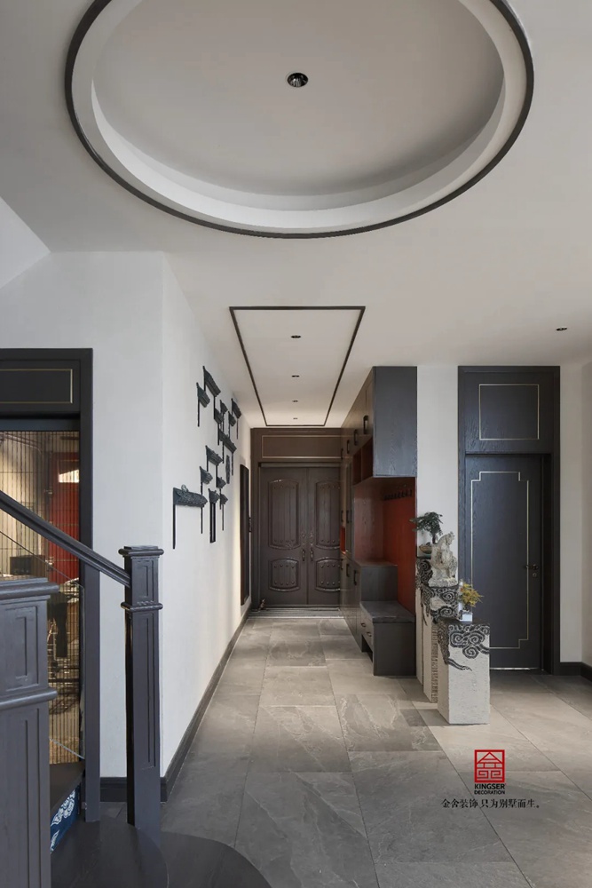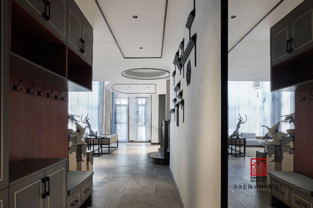 此案例為石家莊金舍裝飾-山水清音別墅500平米新中式風(fēng)格裝修實(shí)景。作品中別墅環(huán)抱于龍鳳湖之中,承山囿之勢,樂水悅之容,天然的地理環(huán)境,讓設(shè)計(jì)師在設(shè)計(jì)之初就要將自然與裝飾完美融合,和諧共生,天人合一。讓靈感融入自然的環(huán)抱,讓自然成為靈感的源泉,無問東西,佳作妙在天成。