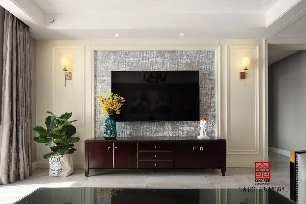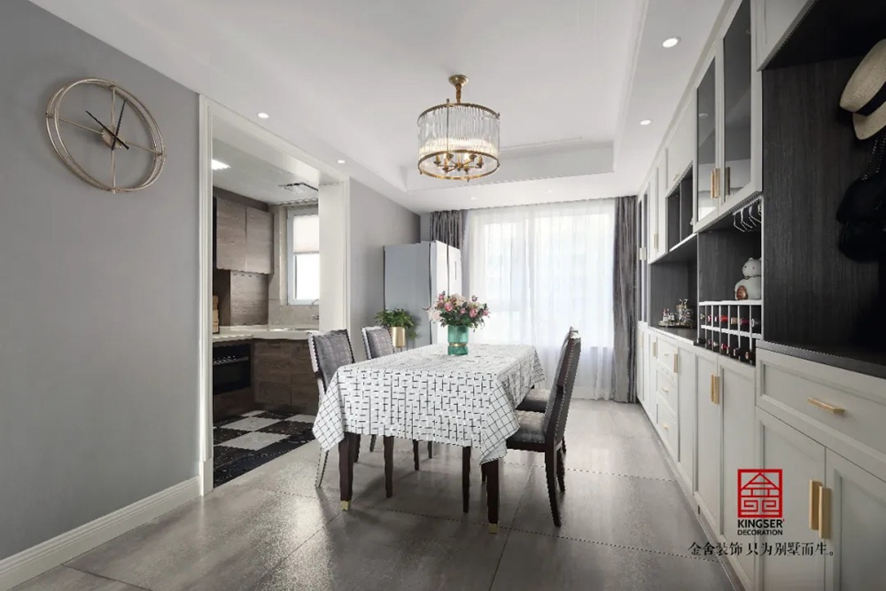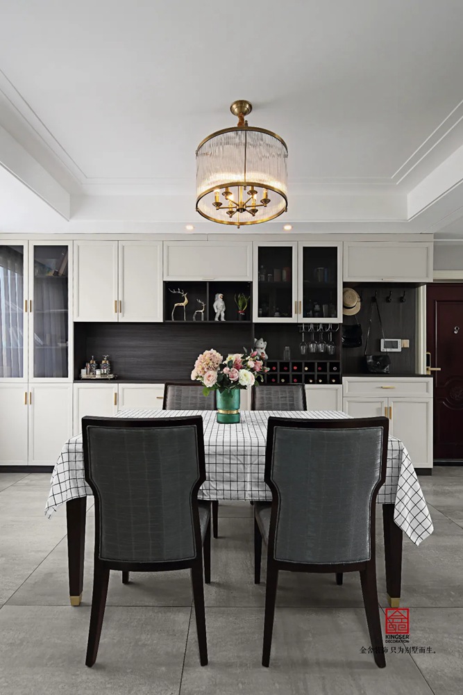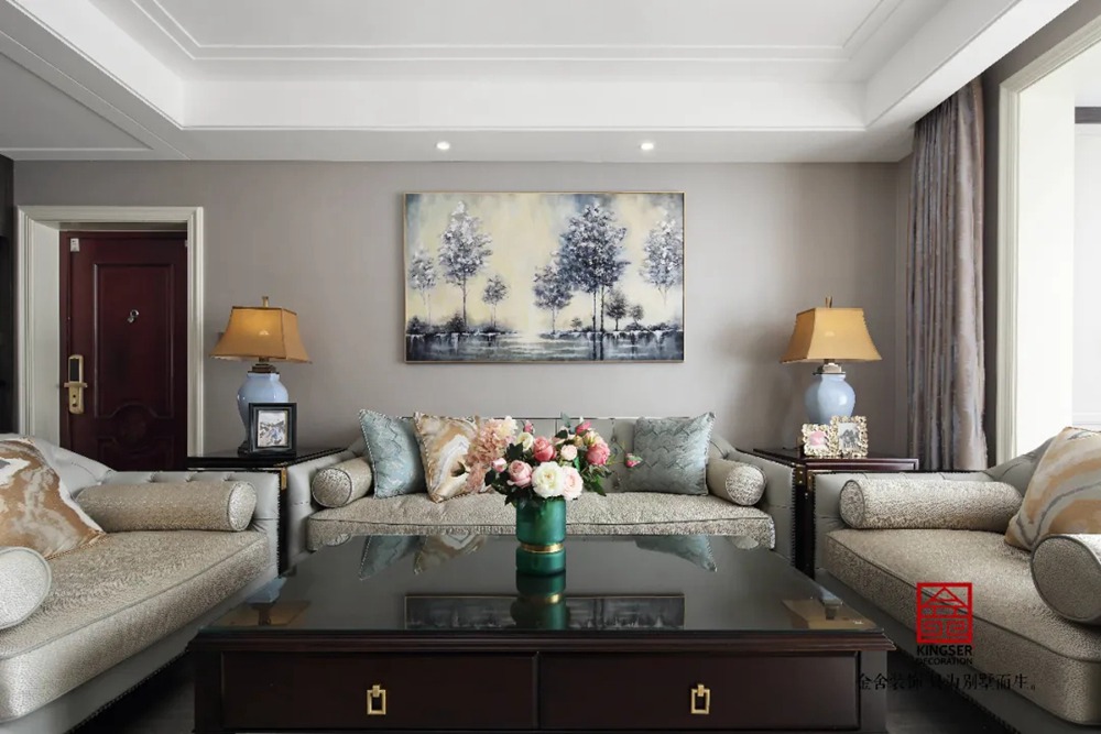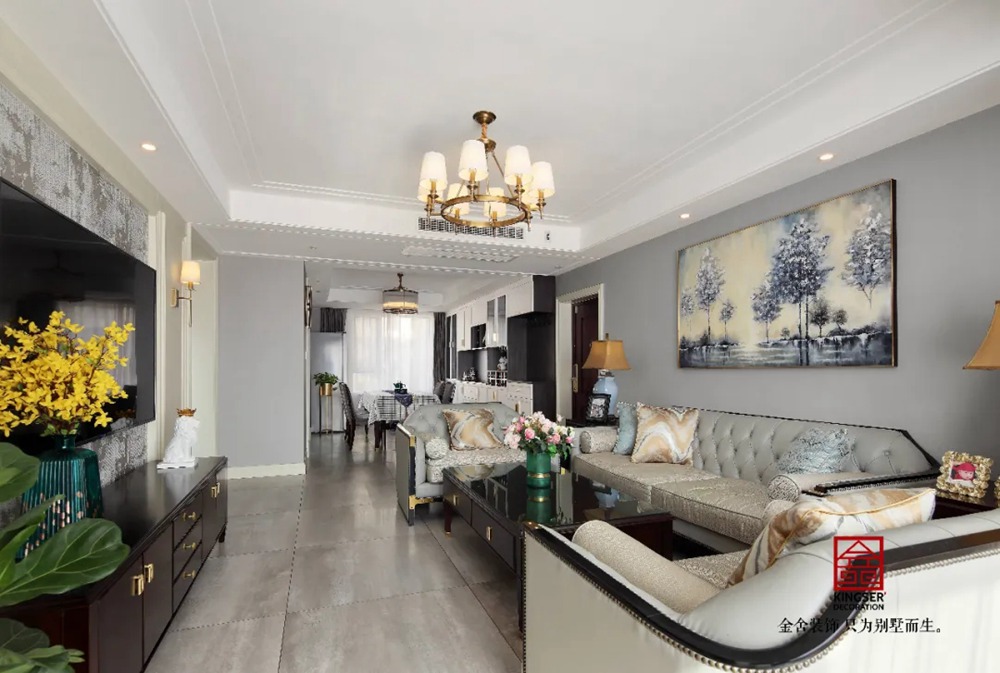 此案例為石家莊金舍裝飾-保利拉菲公館170平米美式風(fēng)格裝修實(shí)景。簡美風(fēng)格就是既有西方元素,又具有強(qiáng)烈的現(xiàn)代時代感元素。每個設(shè)計里都需要軟裝上的搭配去展現(xiàn)出不同的視覺效果。從空間的色彩來講,簡美式風(fēng)格的設(shè)計是以淺色為主、深色為輔的設(shè)計理念為原則。為了避免大范圍采用鮮艷靚麗的顏色,用清凈時尚的裝修設(shè)計維持住整個空間里的大氣優(yōu)雅的感覺。
