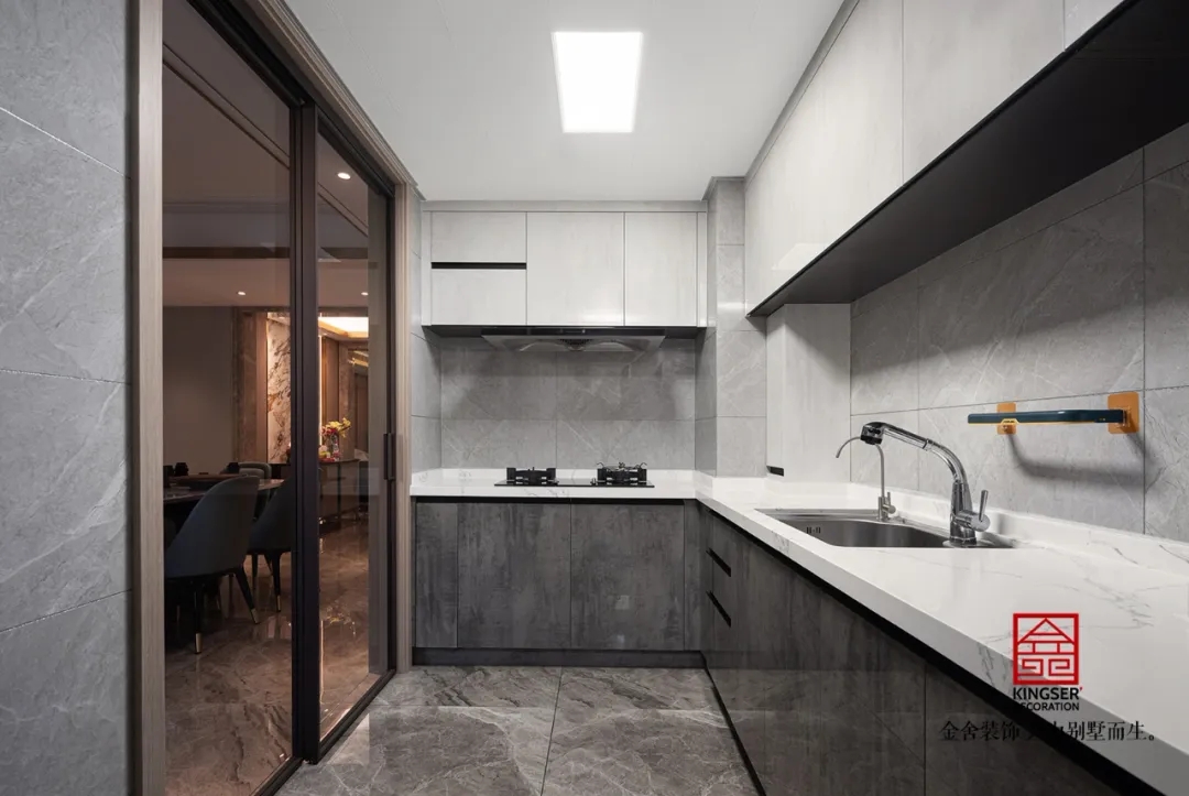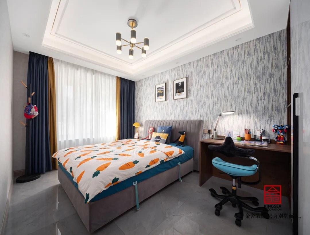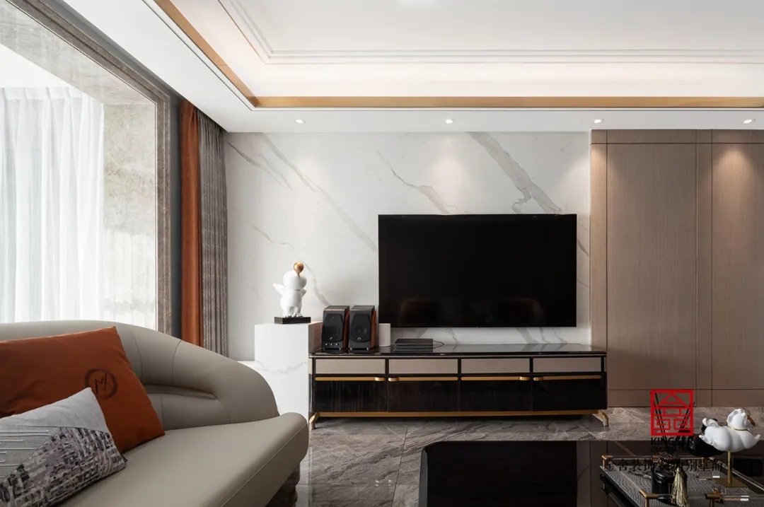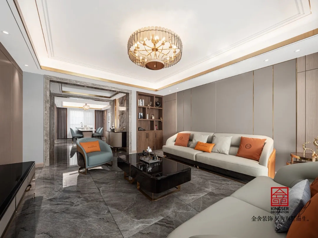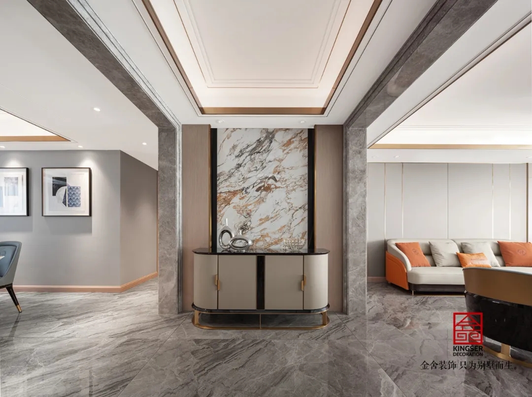 此案例為石家莊金舍裝飾-東南智匯城191平米輕奢風(fēng)格裝修實(shí)景?;疑珜?kù)o似夜,橙色活力迷人,優(yōu)雅低調(diào)的灰色,給人以夜的寧?kù)o,是包羅萬(wàn)象的,可以與任何顏色協(xié)調(diào)。橙色恰如冬日里的陽(yáng)光,可以是快樂愉悅的,又透出一絲深秋的憂傷。