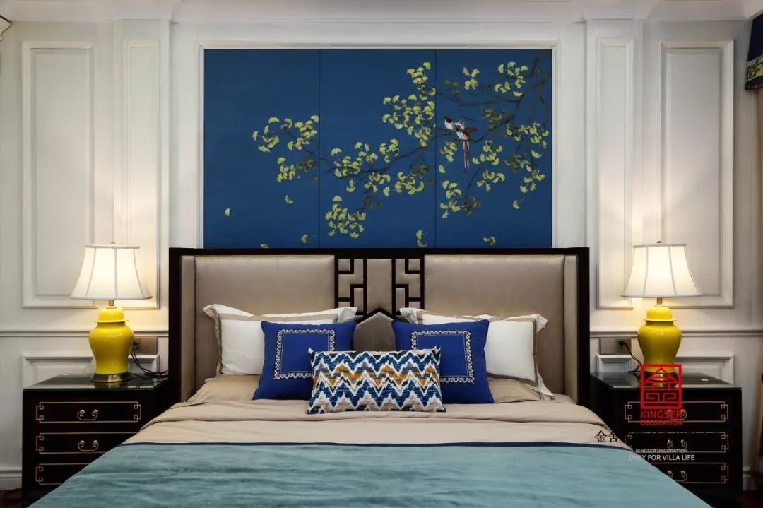 臥室“靜”與“凈”都藏在每一個元素里。內(nèi)蘊悠遠(yuǎn),優(yōu)雅從容,相伴入眠,讓夢境都變得詩意起來。臥室在配色上沒有考慮中式的傳統(tǒng)配色,而是用的紅色與藍(lán)色的配合,讓對比色擺脫傳統(tǒng)的中式氛圍,讓中式的感覺發(fā)生一個質(zhì)的飛躍,讓時尚感充滿整個空間。