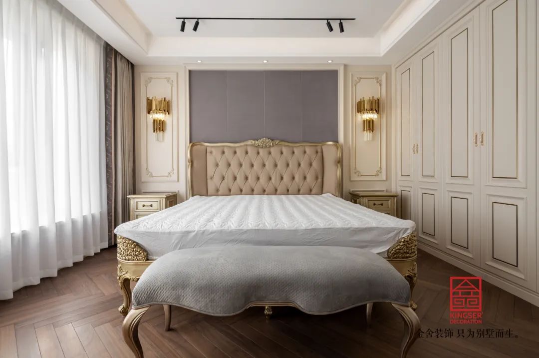 玫瑰灣這套實(shí)景以復(fù)古和奢華著稱,每一個(gè)細(xì)節(jié)都充滿了設(shè)計(jì)感。金色線條與純潔的素色完美結(jié)合,展現(xiàn)出一種對時(shí)尚意味的考究與追求,仿佛每一處都在訴說著不凡與優(yōu)雅。