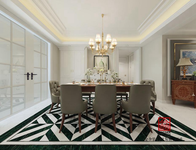 美式風格一般要求簡潔明快,同時裝修較其它風格要更明快光鮮,通常使用大量的石材和木飾面裝飾