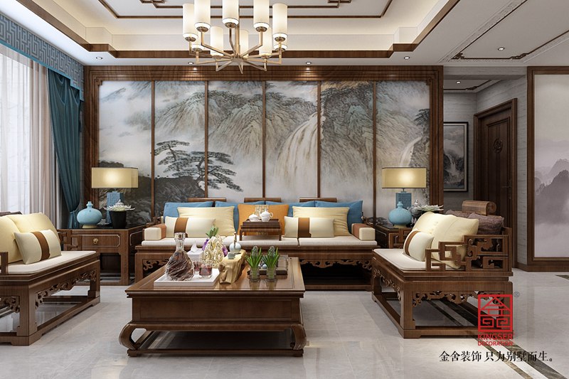 本案為石家莊金舍裝飾-東南智匯城132平米中式風(fēng)格裝修效果圖。中式風(fēng)格的設(shè)計(jì)不同于現(xiàn)代風(fēng)格的簡(jiǎn)約型設(shè)計(jì),通過對(duì)傳統(tǒng)文化的認(rèn)識(shí),將現(xiàn)代元素和傳統(tǒng)元素結(jié)合在一起,以現(xiàn)代人的審美需求來打造富有傳統(tǒng)韻味的事物,體現(xiàn)出了中國(guó)傳統(tǒng)的古典藝術(shù)韻味。本案造型上選擇簡(jiǎn)潔、硬朗的線條設(shè)計(jì),在圖案上要求精致,而且多樣式的線條可以使空間顯得有層次感,明清的中式家具打造一種沉穩(wěn)厚重的裝修效果。處處體現(xiàn)著濃郁的東方色彩,氣勢(shì)恢宏、壯麗華貴,電視墻采用中式風(fēng)格最講究的對(duì)稱造型,與中間的石材山水圖案渾然一體,簡(jiǎn)潔大方,不失韻味