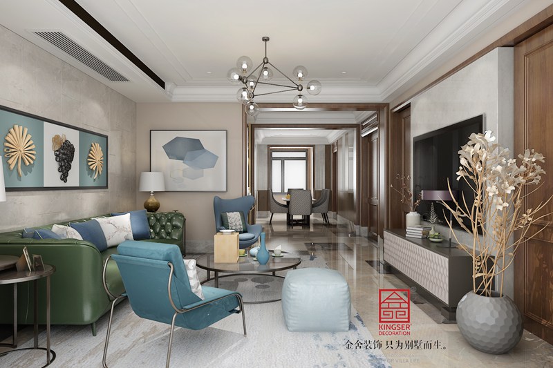 石家莊金舍裝飾-德賢公館160平米現(xiàn)代風(fēng)格裝修效果圖。是圍繞現(xiàn)代為主題,再加上美式的設(shè)計(jì)元素在里面。相互結(jié)合,相交融。以簡(jiǎn)潔明快的設(shè)計(jì)風(fēng)格為主調(diào),簡(jiǎn)潔和實(shí)用是現(xiàn)代簡(jiǎn)約風(fēng)格的基本特點(diǎn)。簡(jiǎn)約風(fēng)格已經(jīng)大行其道幾年了,仍然保持很猛的勢(shì)頭,這是因?yàn)槿藗冄b修時(shí)總希望在經(jīng)濟(jì)、實(shí)用、舒適的同時(shí),體現(xiàn)一定的文化品味。而簡(jiǎn)約風(fēng)格不僅注重居室的實(shí)用性,而且還體現(xiàn)出了現(xiàn)代社會(huì)生活的精致與個(gè)性,符合現(xiàn)代人的生活品位。全面考慮,在總體布局上方面盡量滿(mǎn)足業(yè)主生活的需求,客廳的現(xiàn)代簡(jiǎn)約和臥室的美式溫馨相結(jié)合,融會(huì)貫通。更體現(xiàn)現(xiàn)代簡(jiǎn)約之感。創(chuàng)造一個(gè)溫馨,健康的家庭環(huán)境。
