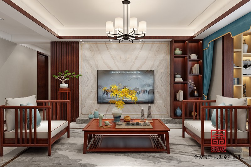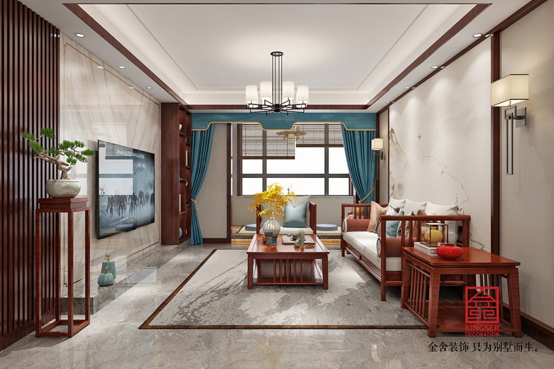 設(shè)計(jì)說明:此案例為石家莊金舍裝飾-東南智匯城132平米新中式風(fēng)格裝修圖。新中式風(fēng)格,既是中國傳統(tǒng)風(fēng)格文化與現(xiàn)代時(shí)尚元素的融合與碰撞,又是在中國當(dāng)代文化理解基礎(chǔ)上的現(xiàn)代設(shè)計(jì)。因?yàn)樯罘绞降霓D(zhuǎn)變,整體在向現(xiàn)代靠攏,運(yùn)用簡單的直線條使空間凸顯層次感,加之主人的個(gè)人喜好和品味,完成符合現(xiàn)代人的新中式。沒有太多的造型修飾,利用吊頂來區(qū)分各個(gè)區(qū)域的功能定位,運(yùn)用軟裝搭配,提升整體的氛圍及品質(zhì)。