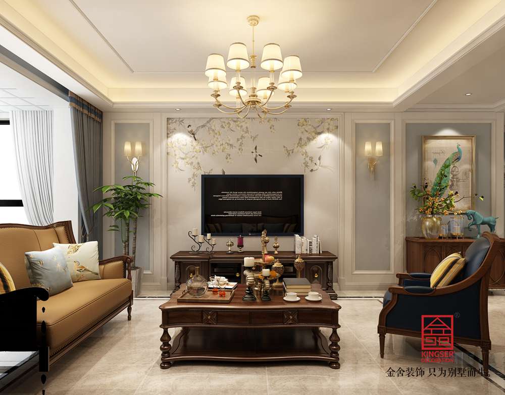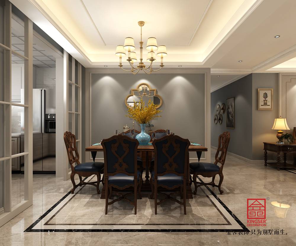 此案例為石家莊金舍裝飾-東南智匯城142平米美式風(fēng)格裝修效果圖。