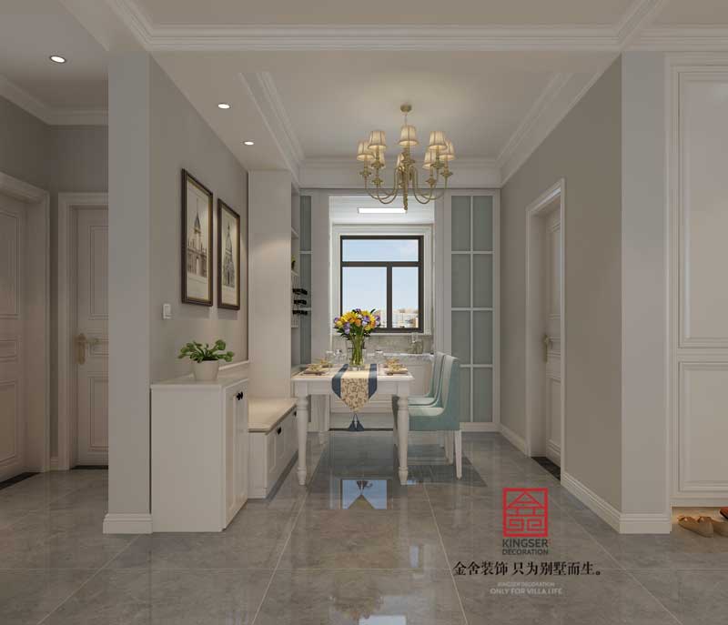 石家莊金舍裝飾-?維多利亞136平米美式風格裝修效果圖。美國是一個崇尚安閑的國家,這也造就了其安閑、隨意的不羈日子方式,沒有太多做作的潤飾與束縛,不經(jīng)意中也成果了其他一種休閑式的浪漫,而美國的文明又是一個移植文明為主導的頭緒。現(xiàn)代美式風格,尋求綺麗、高雅的古典風格。居室色彩主調(diào)為白色。家私為古典彎腿式,家私、門、窗漆成白色。擅用各種花飾、豐厚的木線改動、綺麗的窗布帷幄是西式傳統(tǒng)室內(nèi)裝飾的固定方式,空間環(huán)境多表現(xiàn)出華美、綺麗、浪漫的空氣。