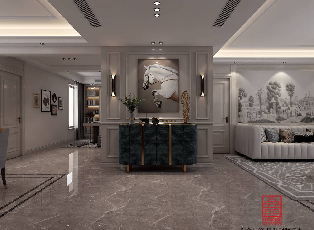 石家莊金舍裝飾-榮盛御府184平米現(xiàn)代風(fēng)格裝修效果圖?,F(xiàn)代簡約風(fēng)格裝飾作為目前裝修市場中消費(fèi)者首選的設(shè)計(jì)風(fēng)格之一,因?yàn)樗囊u簡約、精致以及個(gè)性化的設(shè)計(jì)方式與當(dāng)下的生活態(tài)度和審美情趣相吻合,在加上時(shí)尚百、潮流的設(shè)計(jì)特點(diǎn)讓現(xiàn)代簡約風(fēng)格成了裝修中的一大特色。