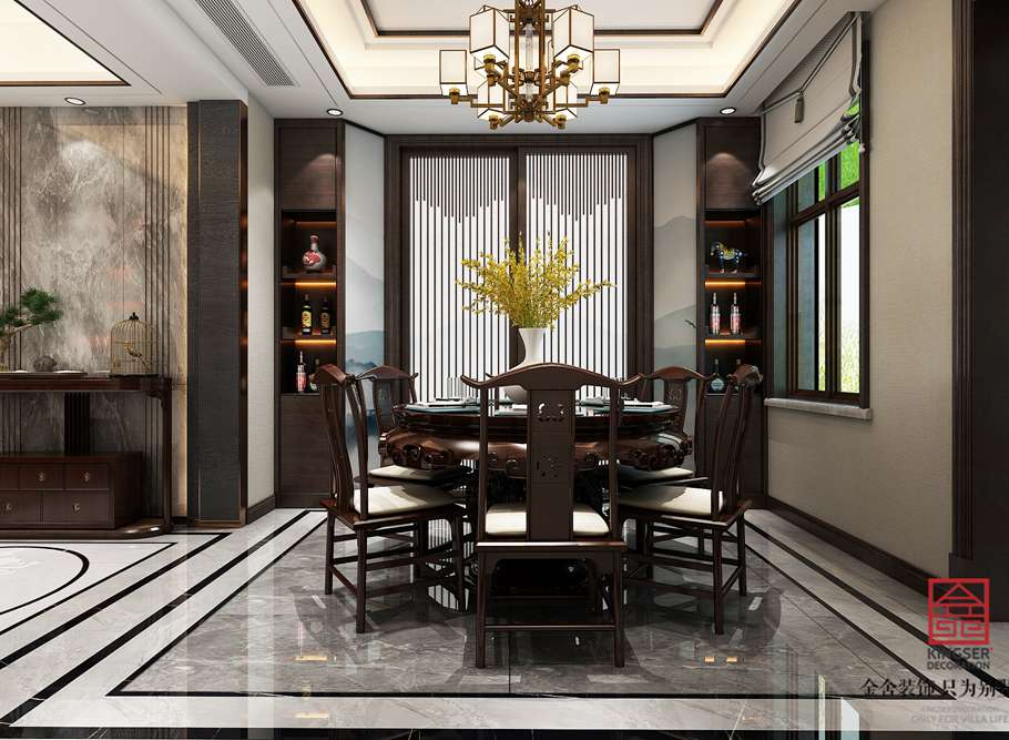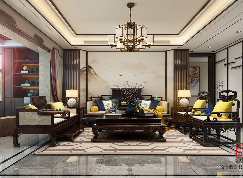 此設計方案為石家莊金舍裝飾-榮盛華府185平米新中式風格裝修效果圖。定位為新中式禪意風格,本方案的設計哲學是給人一種靜謐、平和、舒緩的感覺,新中式設計追求的是一種清新高雅的格調(diào),注重文化積淀,講究雅致意境。以簡樸、舒適、隨意的特點給人很強的吸引力,搭配著新中式的紅木家具,為生活營造出一個寧靜、安逸、平和的風格。既繼承了傳統(tǒng)中式風格的固有理念和元素,又有現(xiàn)代設計理念的創(chuàng)新以及現(xiàn)代工藝的運用。當走進禪意新中式設計的房間,仿若走進了另外一種生活狀態(tài)。新中式的圈椅沙發(fā),簡單大方的茶幾。讓人好不愜意。這種表現(xiàn)能夠完整地體現(xiàn)出居住人追求品質(zhì)、典雅生活,視生活為藝術的人生態(tài)度。