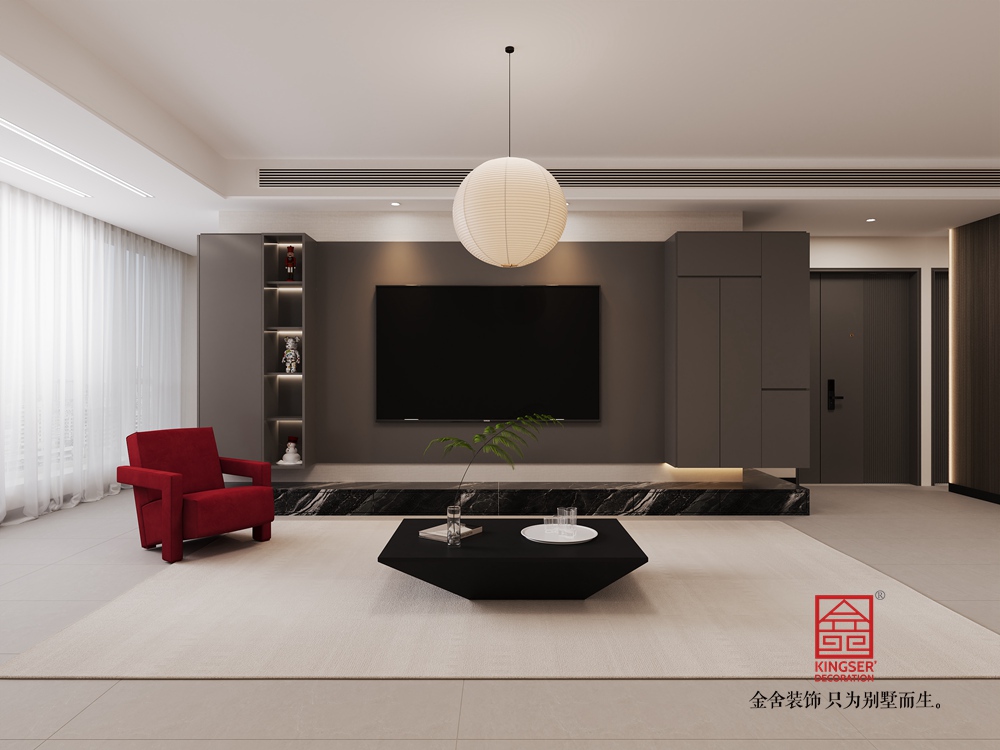 通過極簡的造型、自然的材質(zhì)與克制的色彩搭配,剝離冗余裝飾,讓居住者在簡潔大氣的場景中,感知到 “少即是多” 的設(shè)計智慧,營造出松弛、雅致的現(xiàn)代別墅生活氛圍。