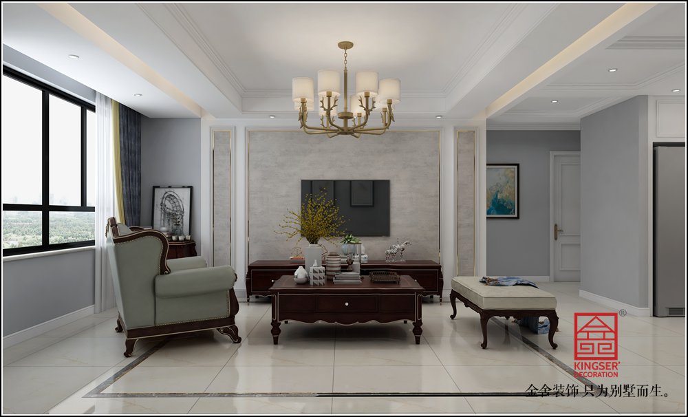 當(dāng)前位置: 首頁(yè) > 裝修案例 > 裝修圖庫(kù) > 保利西悅春天105平米新古典裝修-客廳